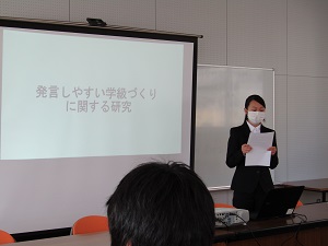 「発言しやすい学級づくり」について、アンケートを実施して調査・研究を進めているという内容でした。