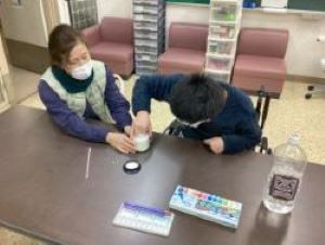 最後に好きな色の絵の具を選び、色を付けます。色が混ざらないように