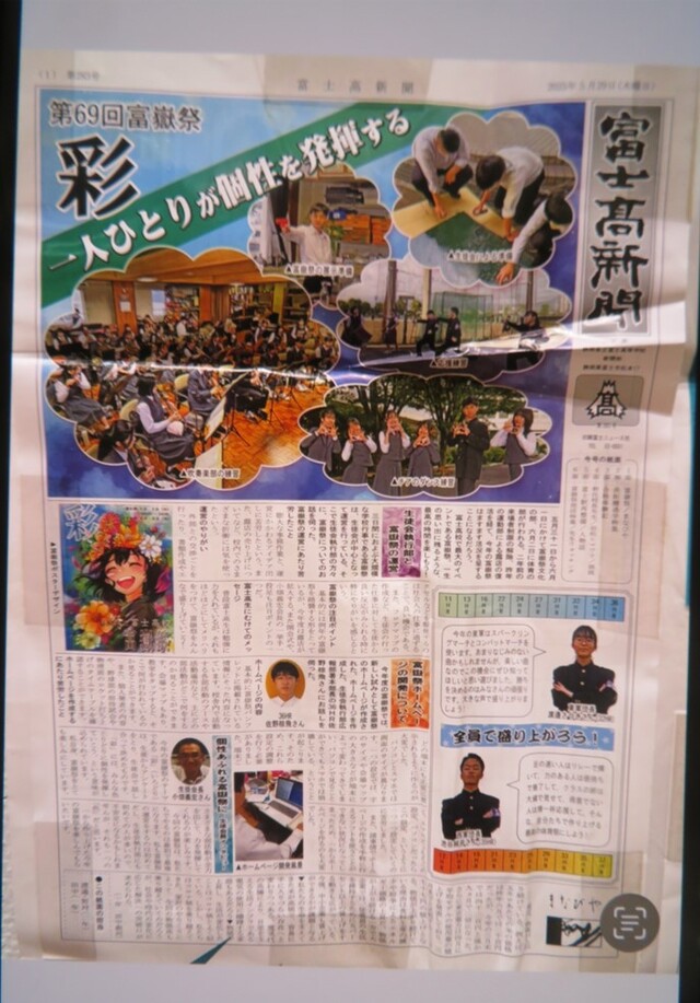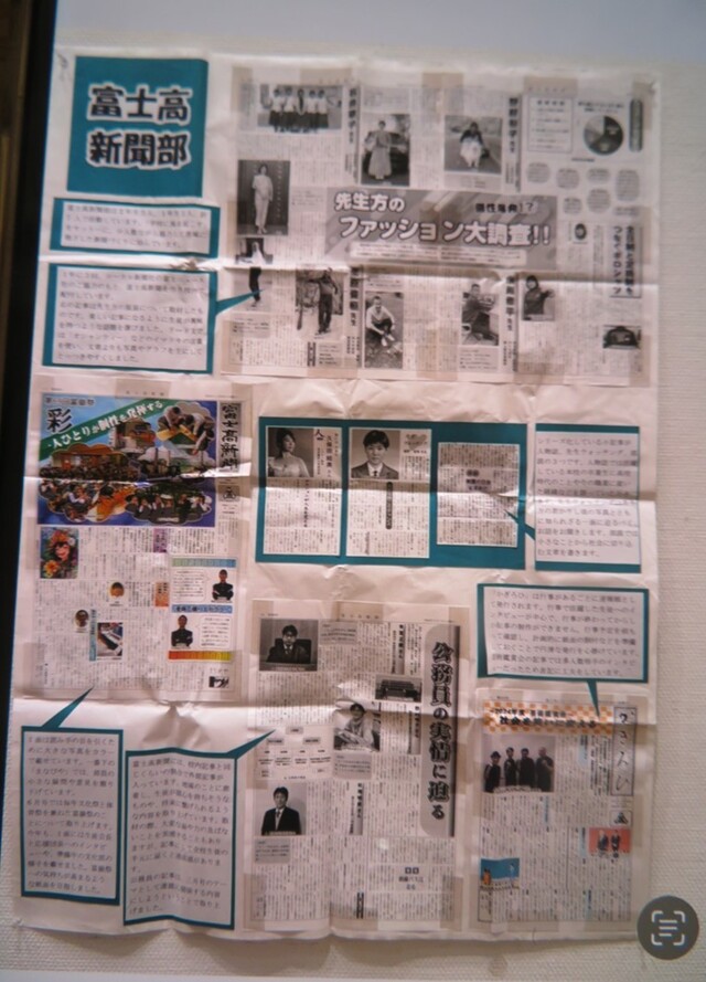 公開日 2025年09月11日 9月6日~7日にグランシップで開催された静岡県高等学校総合文化祭の展示部門に、本校の書道部と新聞部が出品しましたので、紹介します。書道部の作品は、3年生の山本さんが創作したものですが、近くで見ると、繊細さと力強さが融合された見事な作品でした。新聞部の学校新聞は、今年の作品だけでなく、過去の作品も掲示され、作品に対する新聞部員の「熱い熱い」コメントも紹介されていました。