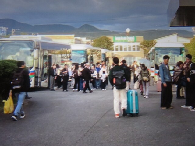 公開日 2025年10月07日 10月7日の朝6時過ぎには、2年生の生徒がぞくぞくと笑顔で学校に集まってきました。今日から10月10日までの3泊4日の修学旅行(高原教室)がいよいよ始まります。生徒の皆さんの心掛けが良かったのか、心配された雨もなく、暑すぎもしない絶好の高原教室日和となりました。午前7時、バスの中から大きく手を振りながら、学校を出発しました。朝から元気いっぱいの2年生でしたが、仲間や先生方と思い出に残る楽しい時間を過ごしてきてくださいね。