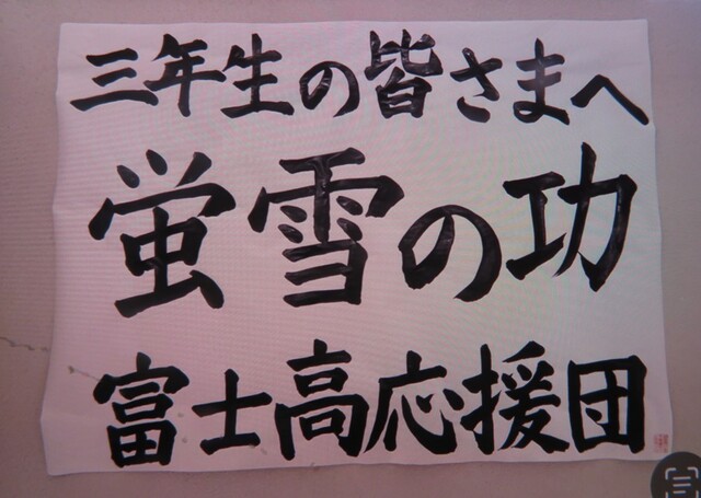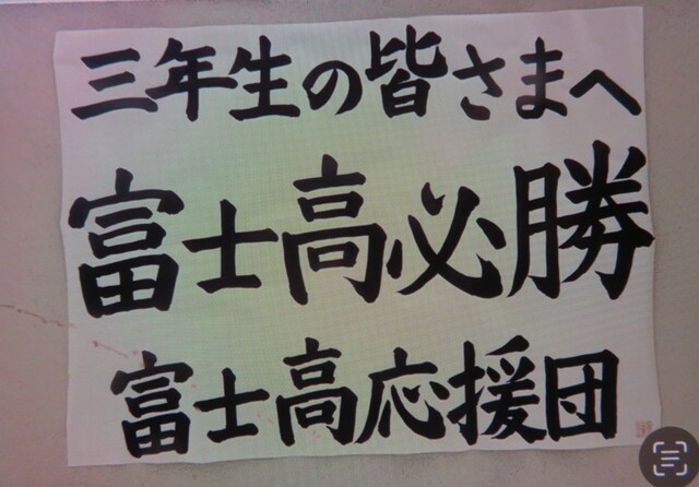 公開日 2025年12月16日 私が校舎内を歩いていると、5階(3年生の教室)に向かう階段のところに、応援団の生徒による「応援メッセージ」が掲示されていました。上の写真は東階段、下の写真は西階段です。とっても温かな気持ちになりましたので、思わず写真をパチッ。
