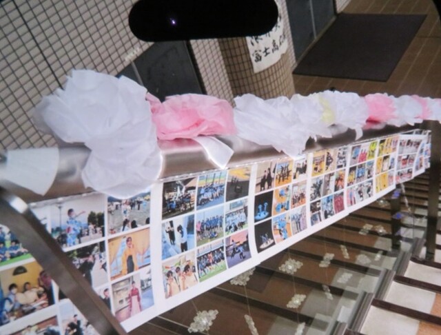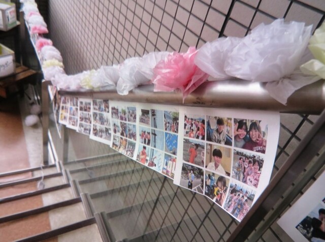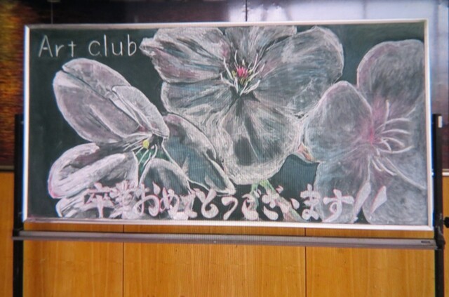 公開日 2026年02月20日 盛り上がった宝永祭が終了して1週間が経ちますが、校舎内では、所々宝永祭の余韻を感じさせてくれる場所があります。2階の生徒ホールに続く螺旋階段には、手すりに思い出の写真の数々が掲示され、生徒たちが熱心に眺めている姿が見られます。階段途中には、卒業する3年生に向けた感謝のメッセージが書かれた灯篭が並んでいます。そして、2階の生徒ホールに到着すると、そこには、美術部による、卒業生への黒板アートが。心通わす温かな空間です。
