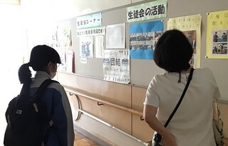 高等部の教室への移動中は、高等部生徒会の活動や部活動の様子を紹介する掲示物に興味を持ち、立ち止まってじっくりと見ていました。
