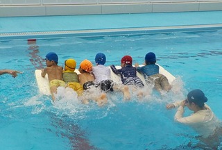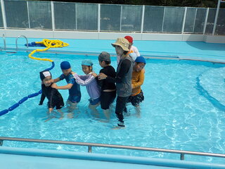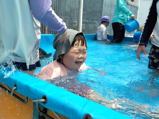 初めは水が怖くて潜ったり浸かれなかったりした子供たちも、プールで活動していくうちに、楽しくて、怖さが減り、潜ったり、肩まで浸かることができるようになりました。