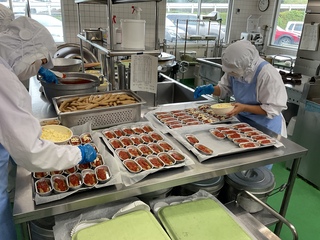 しっかり食べてパワーを蓄え、みんな元気に頑張れるように、子どもたちに人気の焼き肉を取り入れました。すりおろしリンゴを加えた、少し甘めの特製ダレにお肉を漬けて、オーブンで焼き上げて作りました。