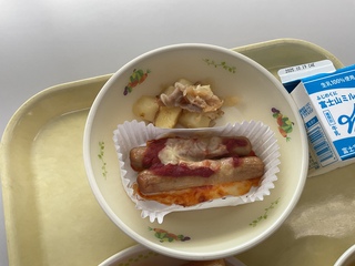 そのまま食べたり、ウインナーを食パンで巻いてウインナーロールパンにしたりと、思い思いの食べ方で楽しく食べていました。