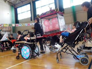 吊るされたボールを取って神輿に入れ、オリジナルの神輿を完成させました。