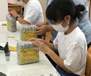 高等部の生徒は、再生事業班の仲間と一緒に作業学習を行いました。