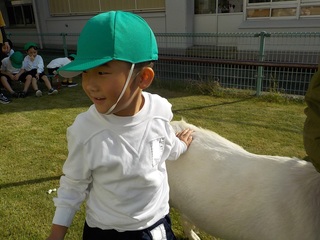 まかいの牧場に到着し、さっそくクラスごと動物たちとの触れ合いを楽しみました。