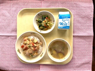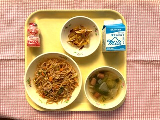公開日 2026年02月24日 【16日の献立】 富士宮焼きそば 牛乳 芋けんぴ 冬野菜とウインナーのスープ ヤクルト 地元のグルメ「富士宮焼きそば」は、子供たちに人気のあるメニューです。給食の焼きそばには、野菜を一人当たり100gほど使っており、野菜がたっぷり摂取できます。 【17日の献立】 親子丼 牛乳 野菜のなめ茸和え さつまいものみそ汁 野菜のなめ茸和えには、キャベツと小松菜が入っています。小松菜は年間を通して、富士宮産を、キャベツは晩秋から初夏にかけては富士市産を使っています!