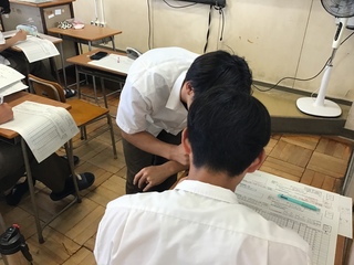各クラスには監督の先生がいて、生徒を見守りながら自身も勉強です。