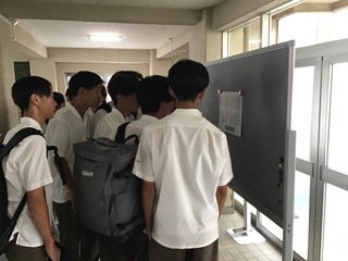 登校してきた生徒たちが昇降口で初めて自分の座席を知ります。