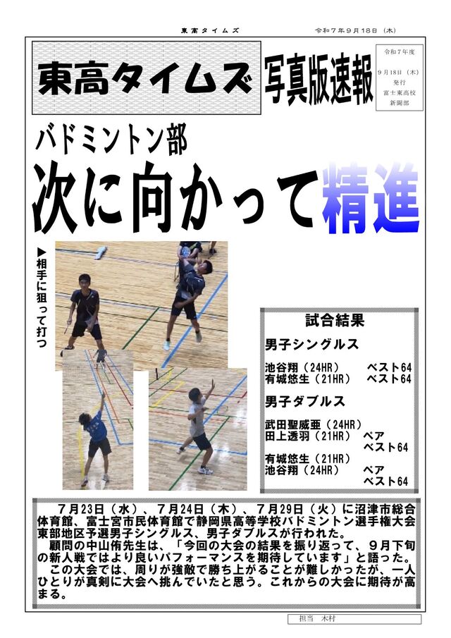 東高タイムズ写真版速報(新聞部作成による部活動最新情報!)