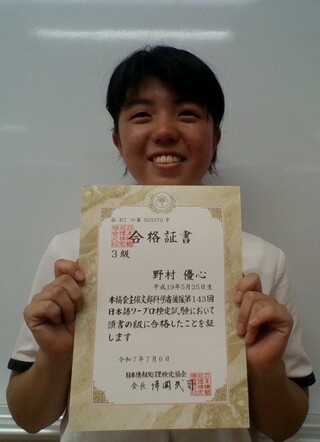 が、見事3級に合格しました。