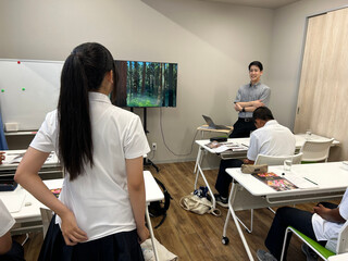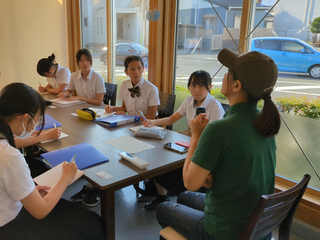 公開日 2025年10月07日 1年生は夏休みに袋井市周辺の起業家(新たな価値を創造し挑戦している大人)を訪問し、事業内容や取り組みのきっかけ、目指すビジョンについてインタビューしました。 情熱や喜びを持って仕事に向き合う姿を目の当たりにした生徒たちは、自らの可能性を信じ、固定観念にとらわれず挑戦することの大切さを実感しました。さらに、これから取り組む探究活動に向けてアドバイスもいただき、今後の活動への大きな励みとなりました。