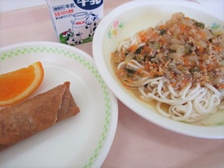 ソフトめん肉みそソース 牛乳 春巻き オレンジ