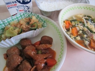 ごはん 牛乳 肉団子の酢豚 中華風ポテトサラダ にら玉スープ