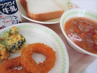 パン 牛乳 ジャム イカリングフライ かぼちーサラダ