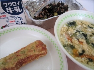 公開日 2025年06月05日 6月4日(水)の給食 ひじきちらし 牛乳 ちくわの磯辺揚げ かきたま汁 6月4日~10日の歯と口の健康週間にちなんでカルシウムたっぷりのひじきごはんとよく噛んで食べるちくわの磯辺揚げを取り入れました。