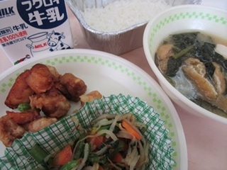 ごはん 牛乳 ふかの甘辛あえ 小松菜のおひたし みそ汁