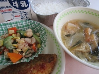 ごはん 牛乳 あじの南蛮漬け ツナと大豆のカラフルサラダ みそ汁