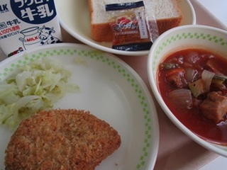 パン 牛乳 ジャム かぼちゃひき肉フライ サワーキャベツ ラタトゥイユ