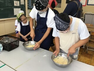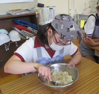 1組はパスタ、2組はおにぎり、3組はホットケーキと、みんなで決め、食べることを楽しみに積極的に取り組むことができました。調理をする日には、廊下にいい匂いが漂い、他の学年の友達ものぞくこともありました。「家でもやってみたよ。」と早速伝えてくれる生徒もいて、学習が生活に結びついていくといいなと思います。