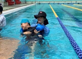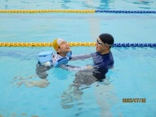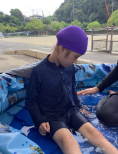 公開日 2025年08月27日 小学部5組 7月の学習の様子 (水に関わる学習) 【大プール・ビニールプール】 身体の力を抜いて浮く感覚や水しぶきを感じたりしながら、生き生きとした表情で活動に取り組みました。 【ウォーターマット】 ウォーターマットで、水が揺れる独特の感覚や涼感を味わいました。