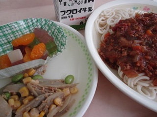 ソフトめんミ ートソース 牛乳 ごぼうサラダ フルーツカクテル