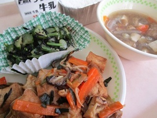 ごはん 牛乳 厚揚げのチャンプルー ごまマヨあえ けんちん汁