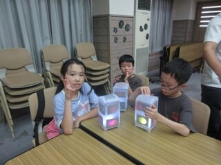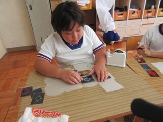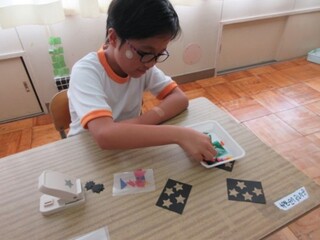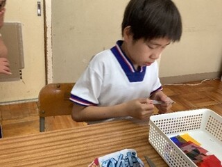 公開日 2025年10月02日 小学部5年 9月 図工 「ランプを作ろう」 宿泊学習でのお楽しみ会に向けて、図工でランプづくりを行いました。自分の好きな形になるように画用紙を切ったり、好みの形の型を選んで穴を開けたりし、その上にカラーセロハンを貼ってランプの飾りを作りました。完成後は教室を暗くして、それぞれのランプを点灯させました。全員のランプが集まると、とても幻想的な空間になりました。
