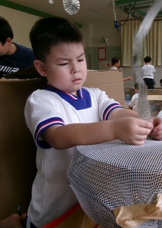 公開日 2025年10月07日 9月 生活単元学習 「かみかみランド、楽しかったね。」 9月は、「かみかみランド」で遊びました。プレイルームには、新聞紙や段ボールを広げ、いろいろな遊び場をつくりました。 新聞紙を扇風機の風で飛ばして遊ぶコーナーでは、新聞紙をちぎって扇風機の風で飛ばしたり、飛んだ新聞紙を追いかけたりして遊ぶ姿が見られました。段ボールを自由に使って遊ぶコーナーでは、電車ごっこやトンネルくぐりをして遊びました。 自分の好きな遊びを見つけて、繰り返し遊ぶ姿が見られました。