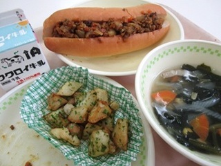 パン 牛乳 ドライカレー のりポテト ほうれん草スープ