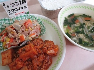 公開日 2025年10月29日 10月29日(水)の給食 ごはん 牛乳 厚揚げのチリソース煮 チキンと根菜のサラダ にら玉スープ チキンと根菜のサラダはかみかみメニューとしてよくかんで食べるように仕上げました。