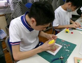 中学部3年 10月 特別活動「WAZAチャレンジ~アートモザイク~」