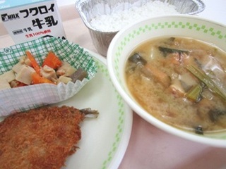 ごはん 牛乳 あじフライ 高野豆腐の含め煮 みそ汁
