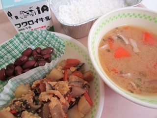 ごはん 牛乳 親子煮 金時豆の甘煮 さつま汁