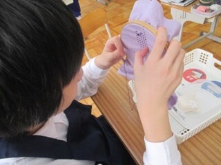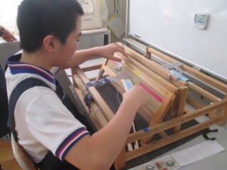 「光る子ショップでお客さんに喜んでもらおう。」を合言葉に、製品作りに取り組んでいます。ミシンで真っすぐに縫うことや糸がよじれていないかを確認しながら刺し子をすること、決められた回数や長さで織ることを頑張っています。少しずつ製品が出来上がっていて、「ワクワクが止まりません。」とやる気いっぱいです。
