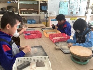 やすり掛けや皿の成形、たたら作りなど、作業を分担してみんなで協力しながら頑張っています。