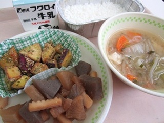 ごはん 牛乳 大根といかの田舎煮 さつまいもの香味揚げ みそ汁