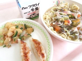 塩ラーメン 牛乳 焼きぎょうざ 中華風ポテトサラダ