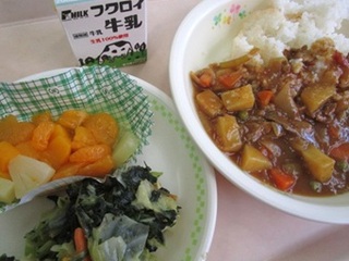 カレーライス 牛乳 キャベツのさっぱりサラダ フルーツミックス