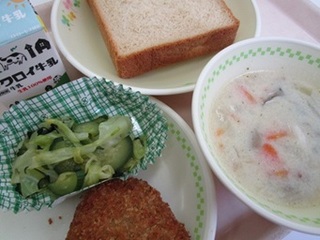 黒糖入りパン 牛乳 かぼちゃひき肉フライ 海そうサラダ