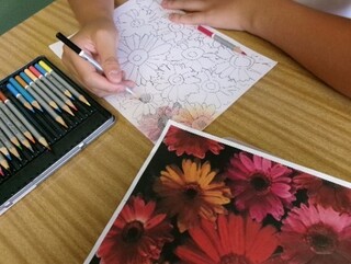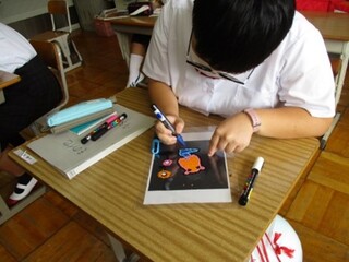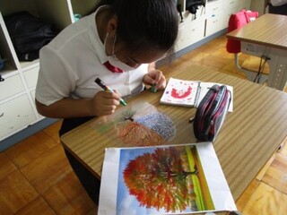 美術では、点描、模写などテーマに沿って、個性豊かな様々な作品を生み出しています。