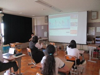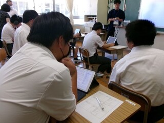 音楽鑑賞では、ジャズ、ロック、合唱曲、Kポップなどテーマを決めて、タブレット端末を使用して各自で曲を検索し、調べた曲の良さをみんなに紹介して楽しんでいます。