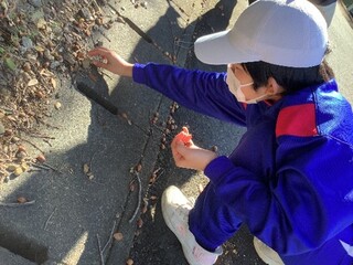 公開日 2025年12月04日 中学部2年 11月 美術「秋を探しに行こう!」 次の美術でフォトフレームを製作します。 今回のテーマは「秋」、学年みんなで学校周辺の「秋」を探しに行きました。 フォトフレームには宿泊学習で拾い集めた貝殻の他に、どんぐりや松ぼっくり、落ち葉などを装飾します。 黄色や赤に色づいた落ち葉や、どんぐり、松ぼっくりを探しながら学校周辺を歩くと、たくさんの「秋」に出会うことができました。 どんなフォトフレームが出来上がるのかとても楽しみです。