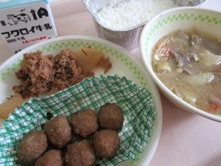 ごはん 牛乳 つくねの甘辛煮 大根とツナの煮物 具だくさんとん汁