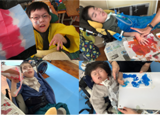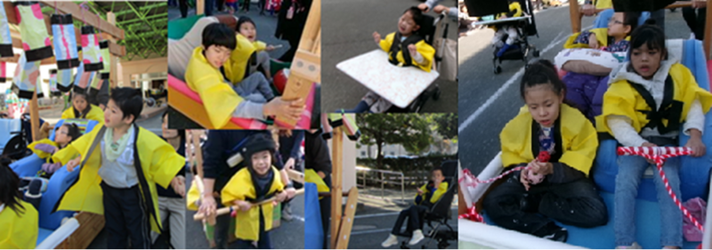 公開日 2025年12月09日 小学部5組 11月の学習の様子 小1~6年 A課程 学校行事【光る子まつり】 光る子まつりに向けて屋台に飾る提灯作りや引き回しを行いました。提灯作りでは、それぞれの方法で和紙に色を付けました。当日の屋台の引き回しでは、「わっしょい、わっしょい!」の掛け声の中、太鼓や笛、鈴などを鳴らしたり、縄を揺らしたりする姿が見られました。