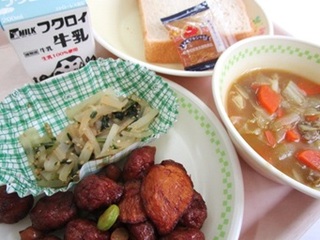パン 牛乳 ジャム 肉団子とじゃがいものケチャップソース和え