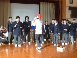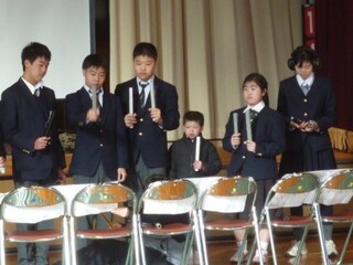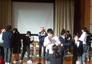 12月12日に中学部の「光る子コンサート」を体育館で行い、それぞれの学年がこれまでの音楽の授業の成果を発表し、他学年の友達の演奏を聴き合いました。